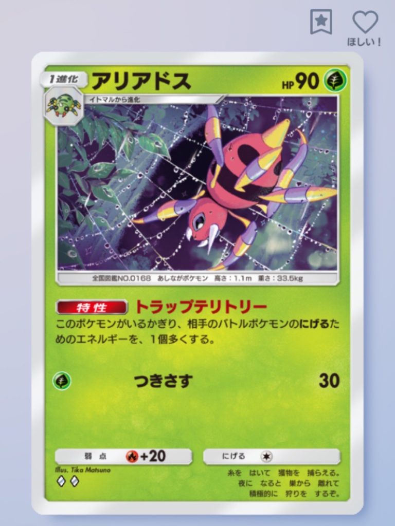 アリアドスもイトマルからの1進化ポケモンで1エネ技、逃げコスト1なのでフットワークが軽いです。
