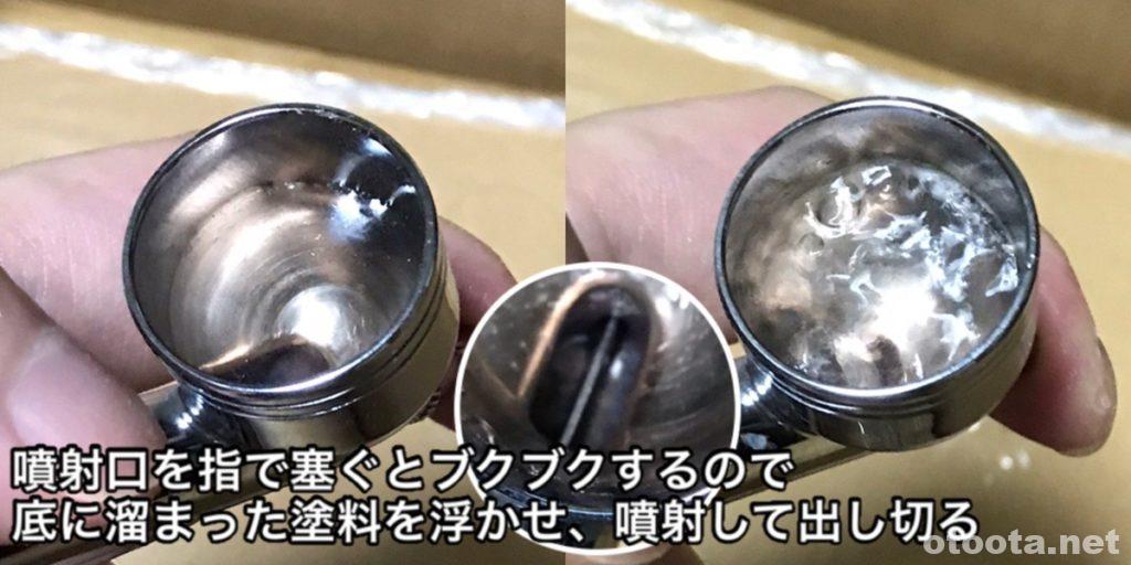 エアブラシで通常の希釈(塗料を溶剤で薄める)する時は、塗料:溶剤=1:1(粘度によっては最大1:2)