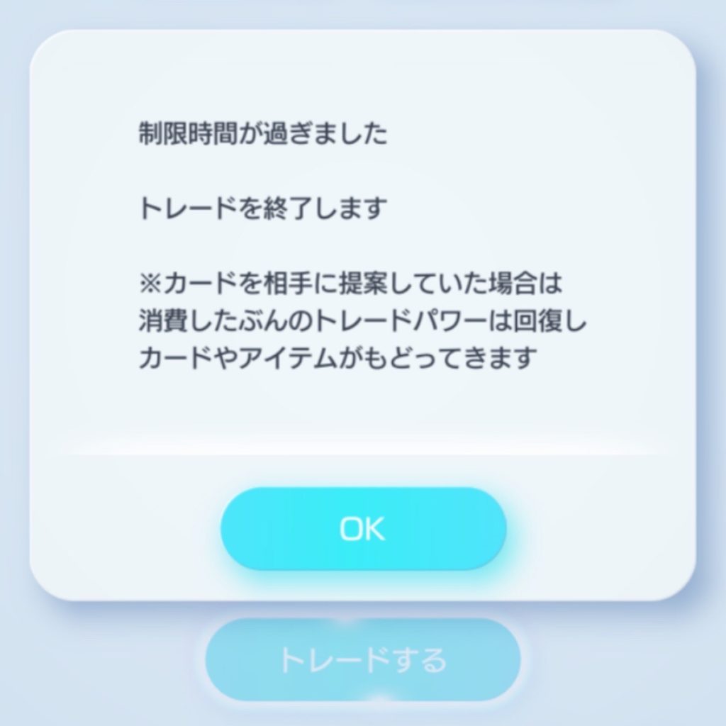 出典:Pokemon Trading Card Game Pocket トレード機能の時間切れ画面