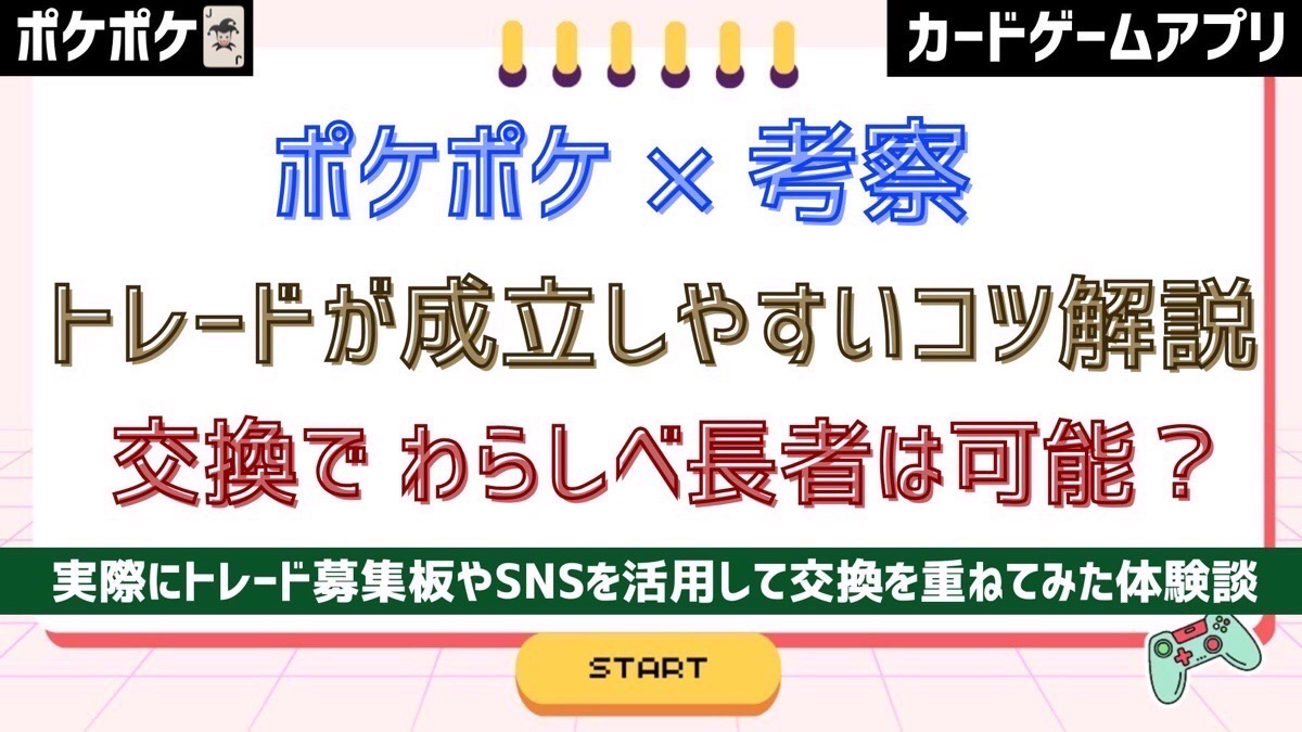 このページでは、ポケポケ(Pokémon Trading Card Game Pocket)のトレードの成功のためにできることを実体験に沿ってまとめています。