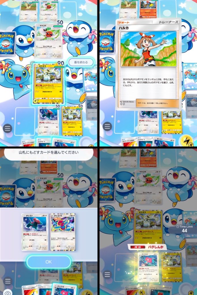 先にポケモンZが手札にきてしまったときは、山札にポリゴン2(2枚)、ポリゴンZ(1枚)しかありません。ハルカが手札にあると、100%の確率でポリゴン2と交換できます。