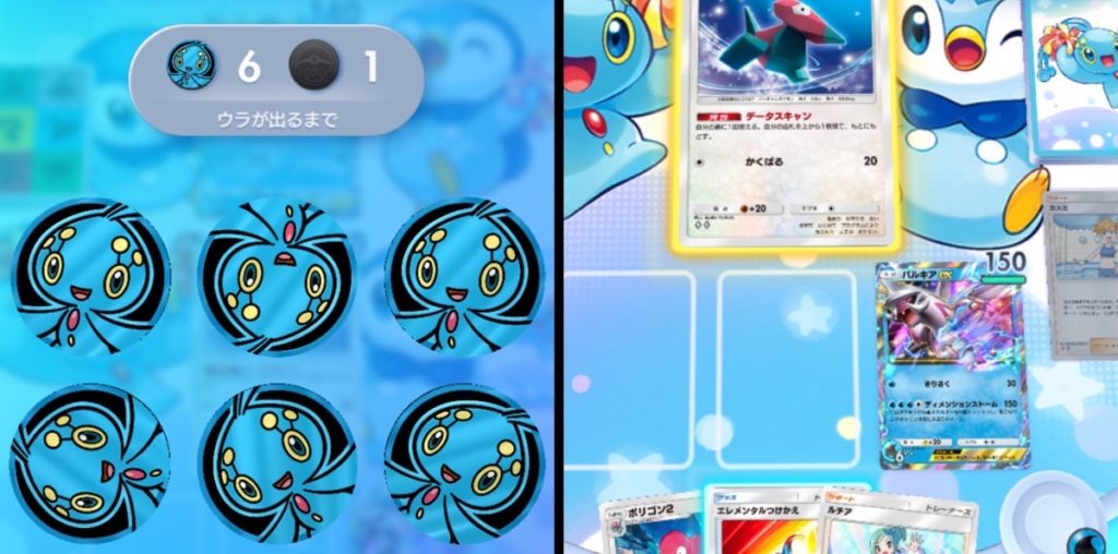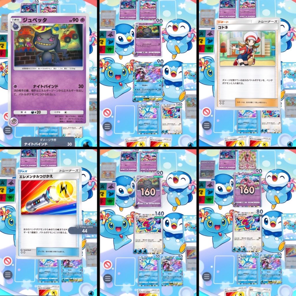 また、コトネ(orリーフ)で1エネついたパルキアをベンチに戻したときに、エレメンタルつけかえが手札にある場合は、交代したポリゴンに1エネを移動させることができます。