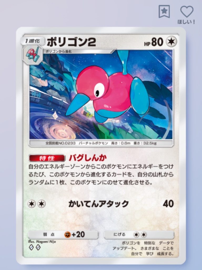 その状態で山札に残ってるポケモンは、ポリゴン2(2枚)、ポリゴンZ(2枚)。