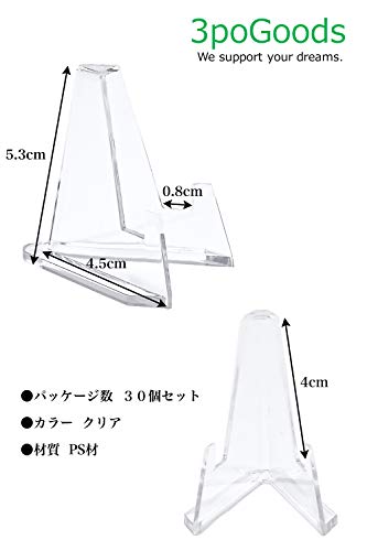 ディッシュスタンド(クリア2号)は、閉じた状態から開いていくと脚が横幅:約5㎝で止まる作りになっているため、小さいアイテムを飾るのに向いています。